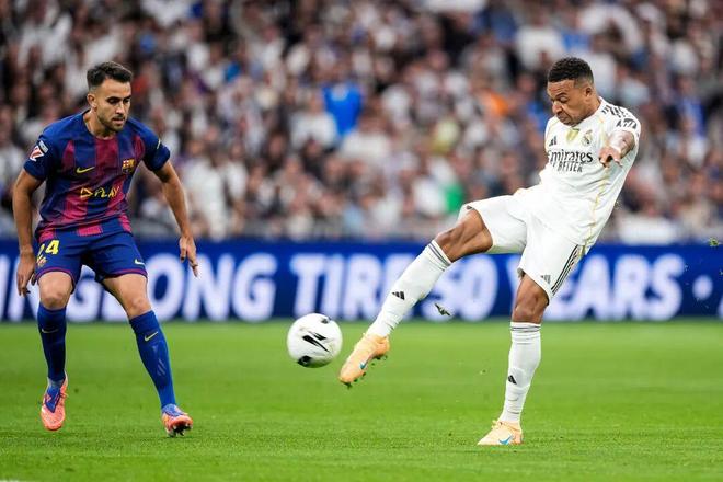 然而皇马上半场的猛攻还是收到了回报,第22分钟姆巴佩接贝林厄姆直塞单刀破门,皇马1-0取得领先。第38分钟拉什福德横传助攻费尔明进球,巴萨扳平比分。半场结束前,皇马前场任意球开出,米利唐头球助攻贝林厄姆推射空门,皇马再度领先。随后姆巴佩再次打进一球又因为越位被吹,皇马2-1领先结束上半场。